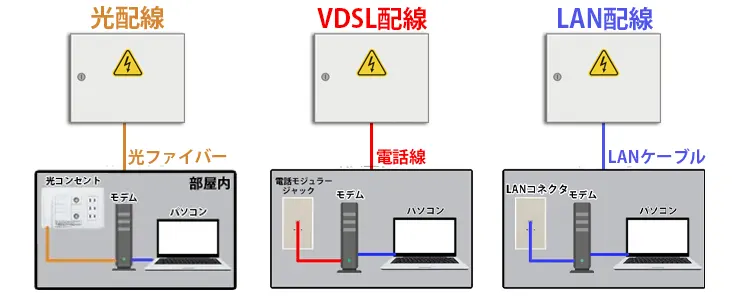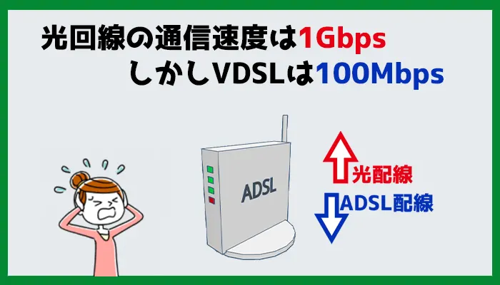 新しい建物であまりVDSL配線はありませんが、少し古い建物の場合VDSL配線のケースがあるので、速度を気にするなら事前に確認してください。