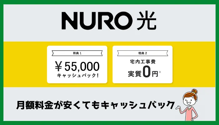 | ソフトバンク | NURO光 | 3,850円 | 55,000円 | |