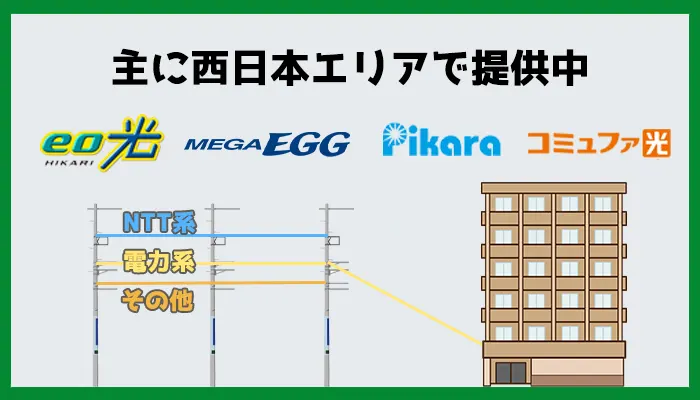 主に西日本で多く提供されているサービスで、NTTの光ファイバーのように他のサービスと光ファイバーを共有しないため、NTT系の光回線よりも通信速度が高速です。
