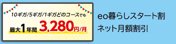 1年目は「eo暮らしスタート割」が適用になるためどのコースでも1年間月額3,280円となります。