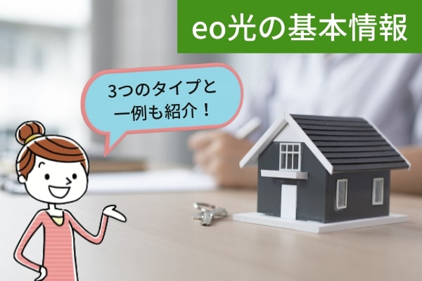 eo光は大きく分けて戸建て向けのプラン【ホームタイプ】、集合住宅で光ファイバーを外部から部屋まで直接引き込む【メゾンタイプ】、集合住宅向けの【マンションタイプ】の3つに分かれています。