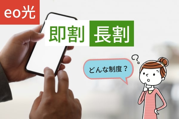 eo光には、契約後最低でも2年間はeo光の利用を前提とした「即割」と、2年以上利用している方を対象とした「長割」という割引を提供しています。