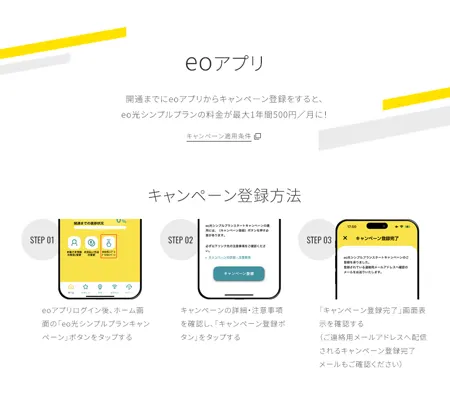 • eo光シンプルプランをeoアプリから申し込みをすること。
