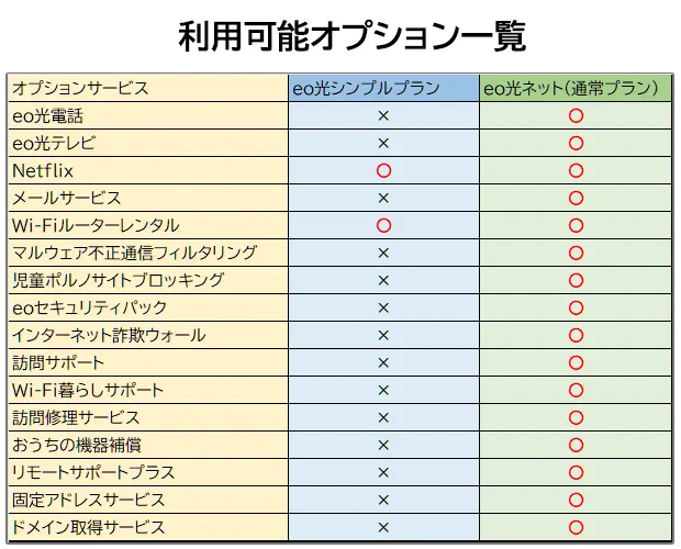eo光シンプルプランとeo光ネットの比較