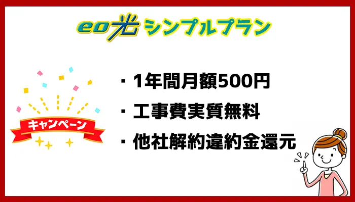 キャンペーン期間中にeo光シンプルプランを申し込むとeo光の工事費が実質無料になります。