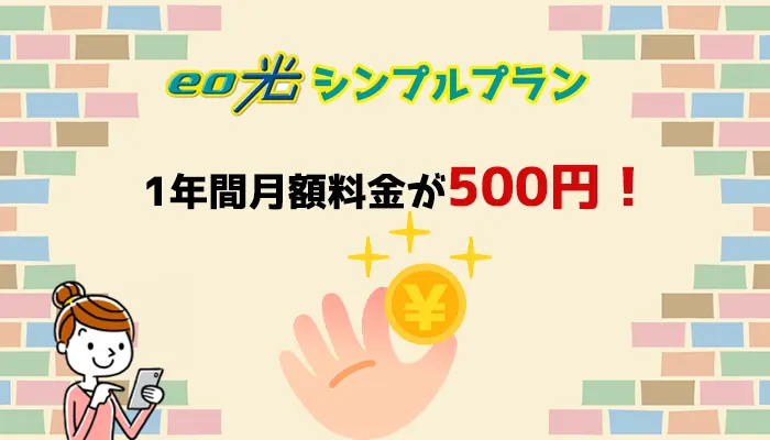 eo光シンプルプランは、戸建てタイプの10ギガに特化しており、1年目の月額料金が500円、2年目以降の月額料金は5,500円と格安で利用できるのも大きな特徴です。