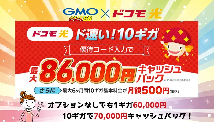 - 10ギガプラン申し込みならキャッシュバック最大126,000円