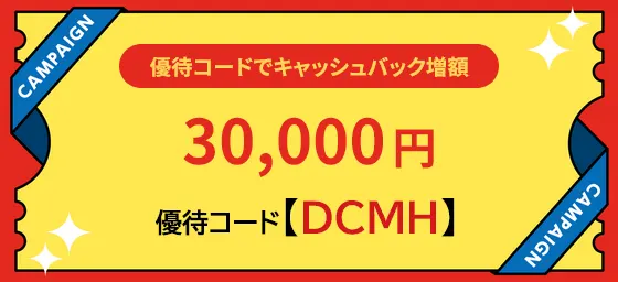 ※優待コード未適用時は25,000円キャッシュバックです。