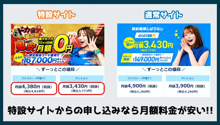 月額料金が安い特設サイト!