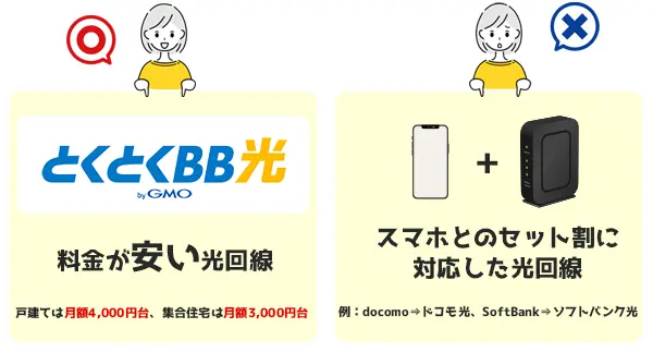 GMOとくとくBB光は、セット割の適用はできませんが、月額料金が安い光回線です。