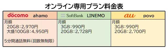 通信品質が心配な人におすすめなのが各社のオンライン専用プランです。