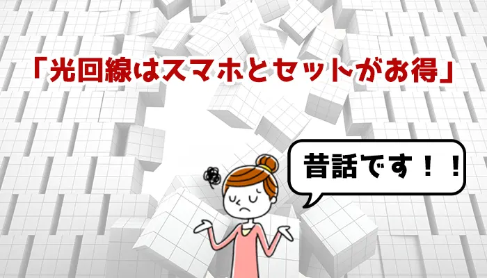家電量販店やインターネットで光回線おおすすめを検索すると、ほとんどの場合「光回線とスマホはセットがおすすめ」という記事や説明ばかりです。