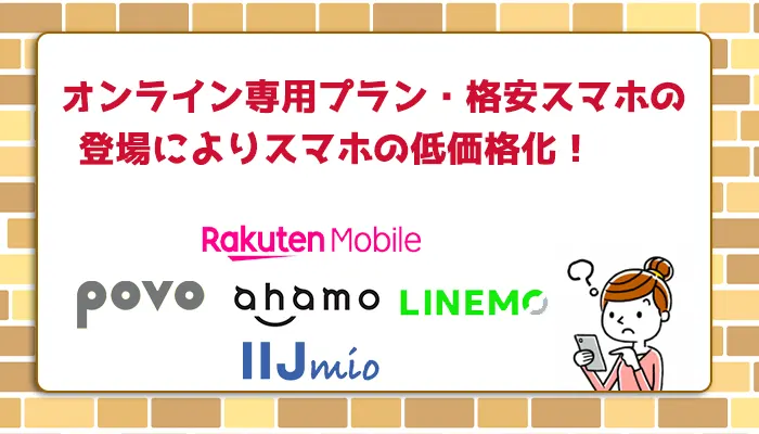 しかし、現在では、オンライン専用プランや新規参入の楽天モバイルなど低価格なスマホが利用できるので、セット割を利用しなくても通信費を抑えることができます。