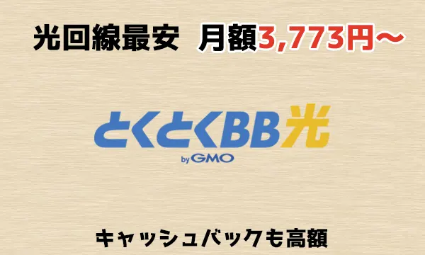 キャッシュバック+料金が安い「GMOとくとくBB光」
