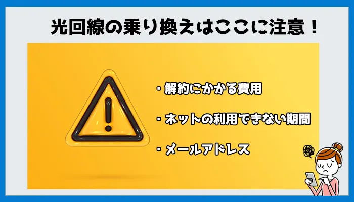 光回線を乗り換える際、コストやキャンペーンは重要ですが、それ以外にも注意しなければいけない点があります。