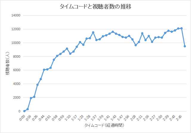 20:55 (TC :1:25) 同時視聴者数:10599人 チャンネル登録数2900人