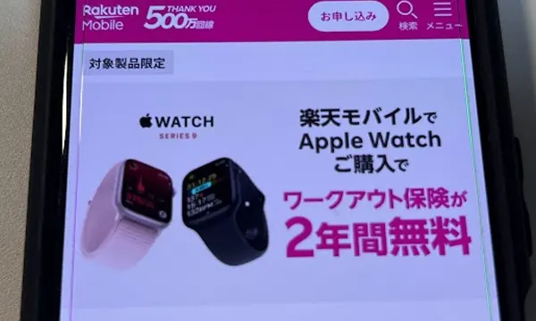 | Apple Watch購入でワークアウト保険が2年間無料! | 楽天モバイルでApple Watch購入で、ワークアウト保険が2年間無料 ※最大10万円補償 |