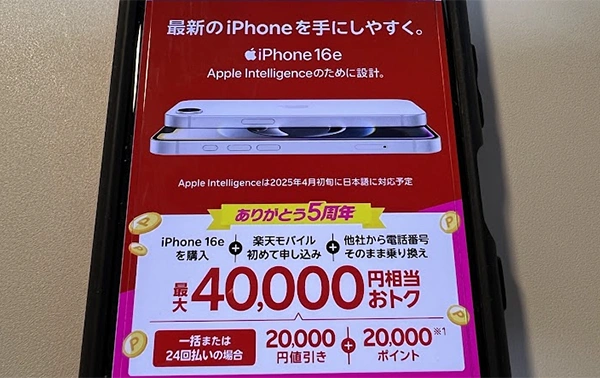 | iPhone 16e | 20,000円値引き+20,000ポイント |