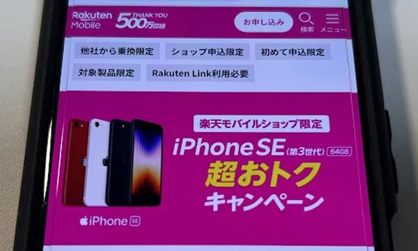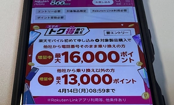 楽天モバイルは申し込み先次第でキャンペーンが変わる場合があります。