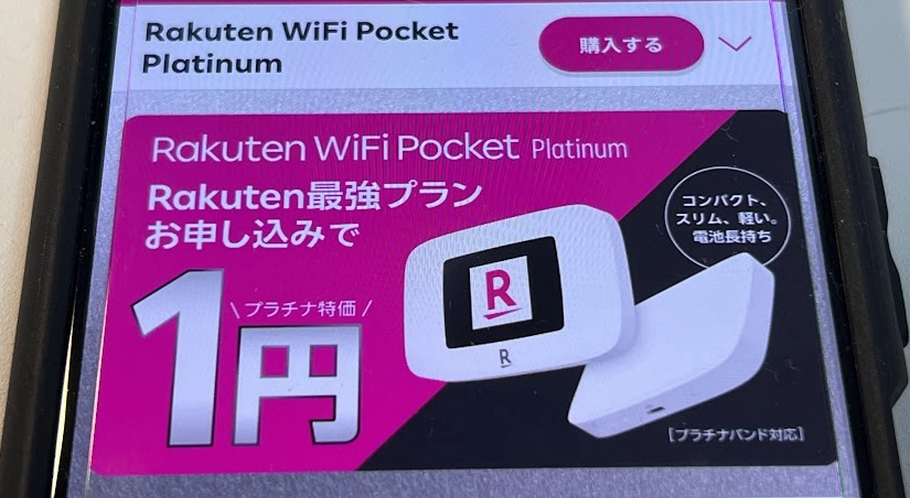 | Rakuten WiFi Pocket 1円キャンペーン! | プラチナバンド対応Rakuten WiFi Pocket Platinum が1円で購入可能 |