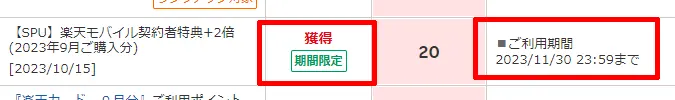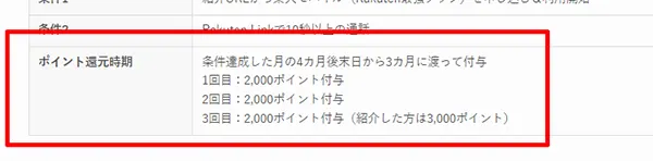 楽天モバイルのキャンペーンでもらえるポイントは、条件達成月の翌々月末ごろが多いです。