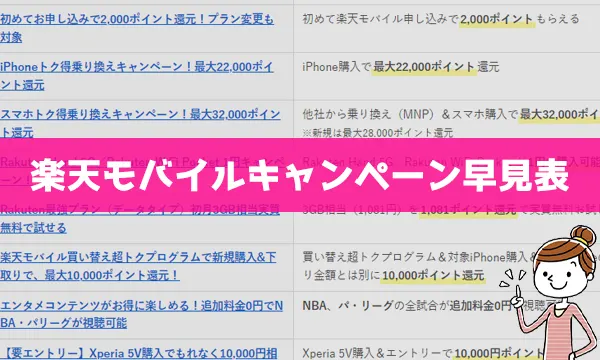 楽天モバイルキャンペーン早見表!お得なキャンペーンを見つけよう