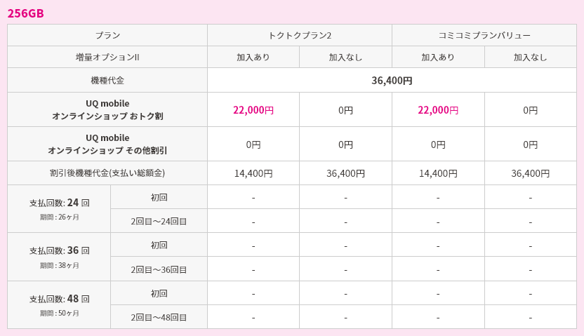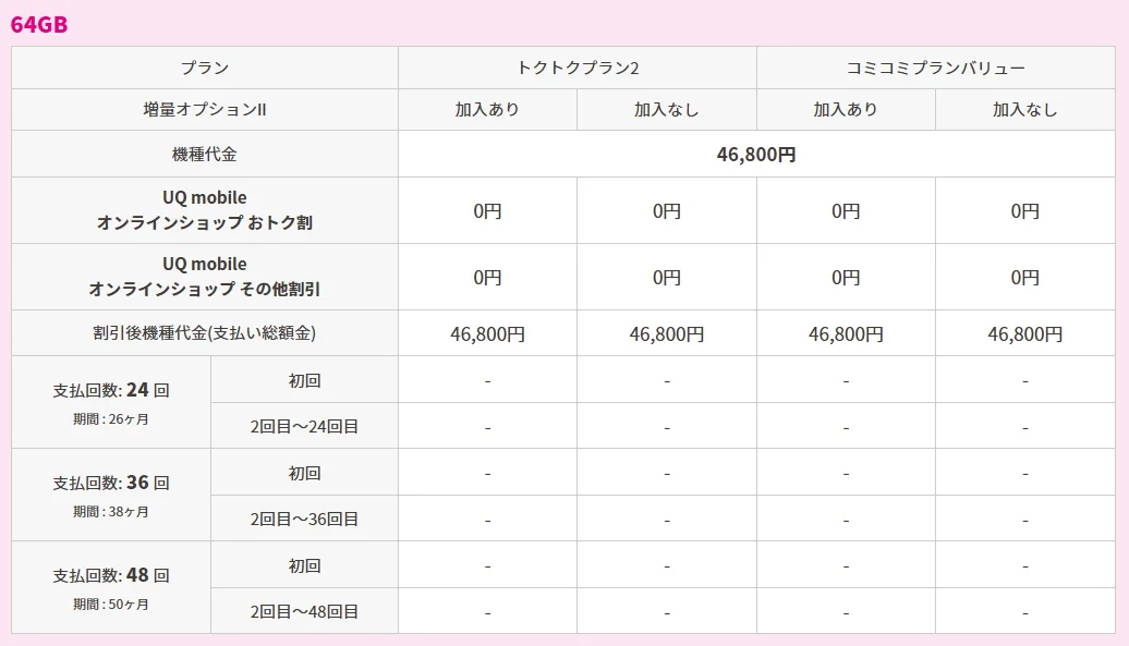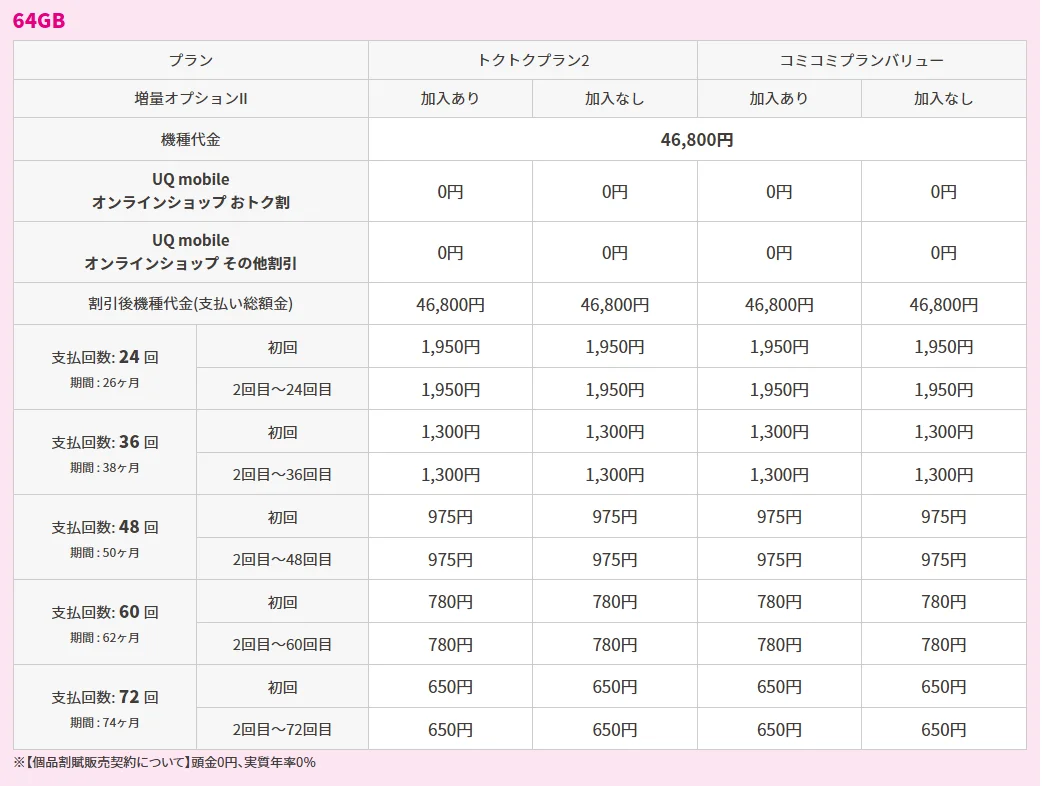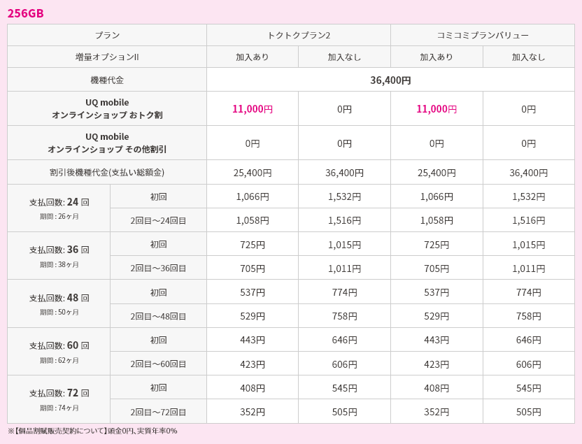 なお、UQ mobile オンラインショップ限定 おトク割では、割引価格にてスマホを購入することが可能です。