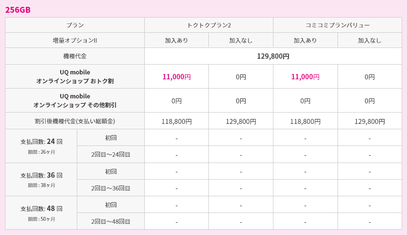 UQ mobile オンラインショップ限定 おトク割