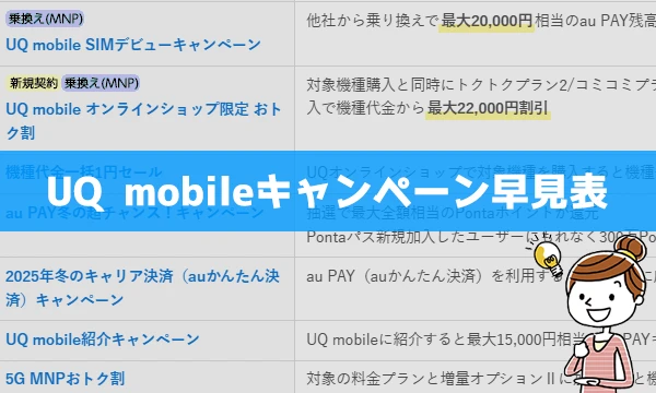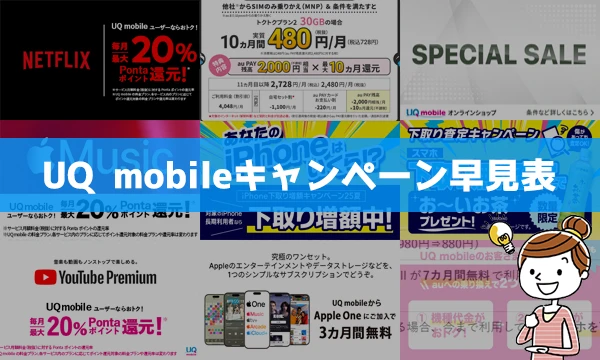 UQモバイルキャンペーン早見表!