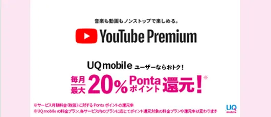 • UQ mobileから初回加入でYouTube Premium 3カ月無料!