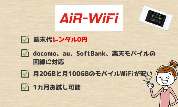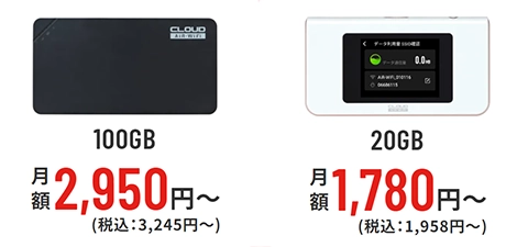 | 月間100GB | 3,245円 | AiR-WiFi |