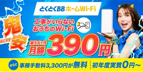 - 開通手続き料が無料もしくはWi-Fiルータープレゼント
