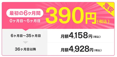 料金に関して、最初の6カ月間は月額390円のため、鬼安で利用できます。