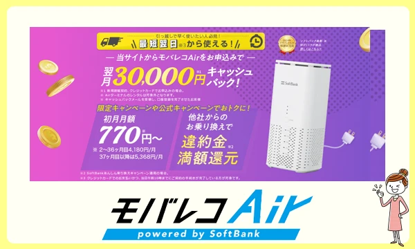 WiFi革命セットは、コンセントに挿して直ぐに利用可能のホームルーター「モバレコAir(SoftBank Airコラボモデル)」と「ポケット型WiFi(月100GB)」の両方が提供されます。
