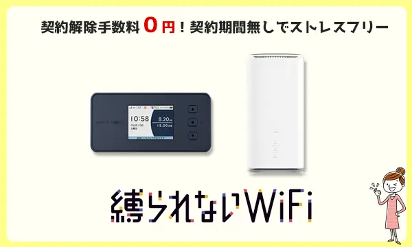 契約期間縛りなし、端末代1円、事務手数料0円、安いWi-Fiを探している人におすすめです。