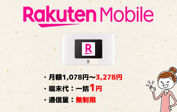 無制限で料金が一番安いWiFiは「楽天モバイル」です。