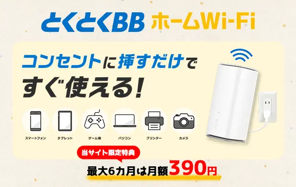コンセントに挿して直ぐにWi-Fiが使える「とくとくBBホームWi-Fi」
