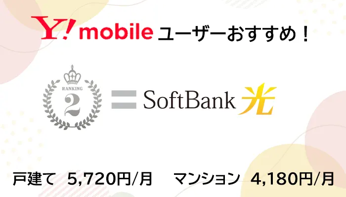 NURO光が利用できない地域の方であれば、ソフトバンク光もワイモバイルユーザーにとってお得な光回線となります。