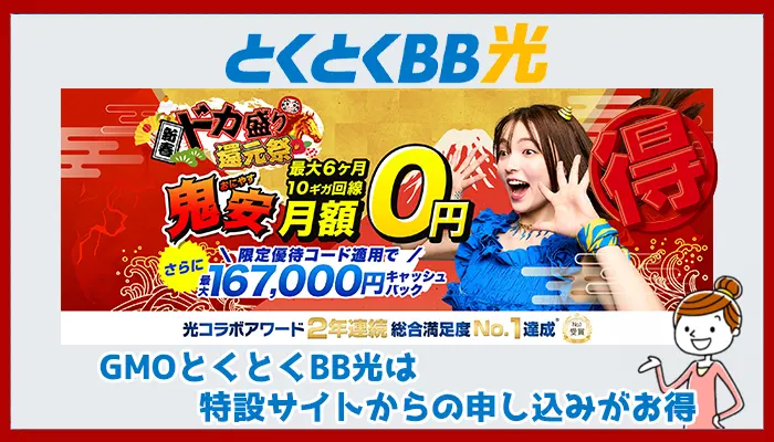 ただしGMOとくとくBB光は公式サイトでも、通常のサイトと特設サイトの【鬼安キャンペーン】の2つがあります。