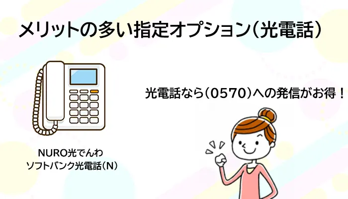 主な指定オプションサービスは光電話ですが、固定電話は不要という人でも携帯電話の通話料金と比べ安くなっています。