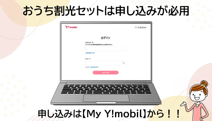 おうち割光セット(A)の申し込みは、ワイモバイルの【My Y!mobile】にログインして手続きを行います。