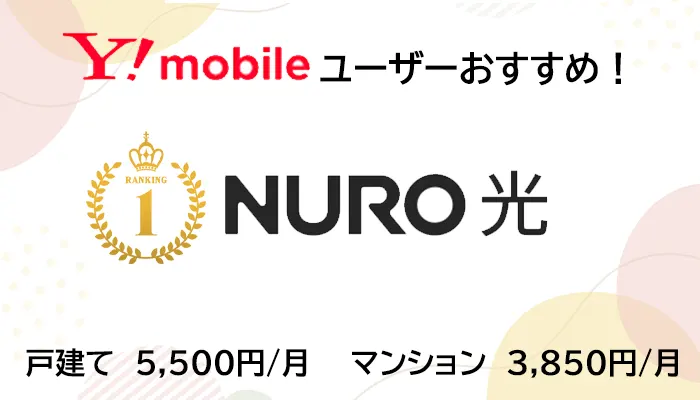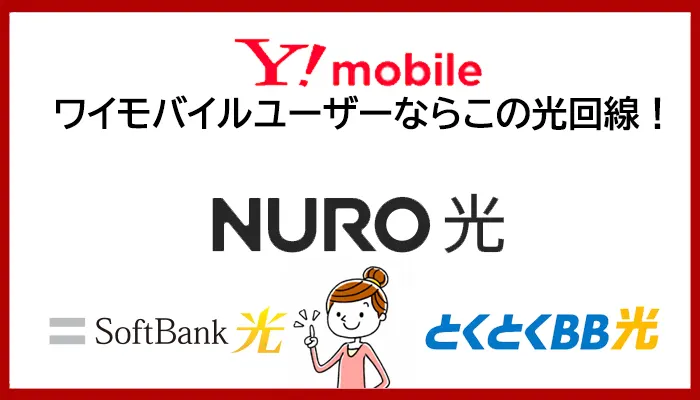 ワイモバイルのおうち割光セット(A)に対応している光回線はNURO光とソフトバンク光ですが、ワイモバイルユーザーにおすすめの光回線はNURO光です。