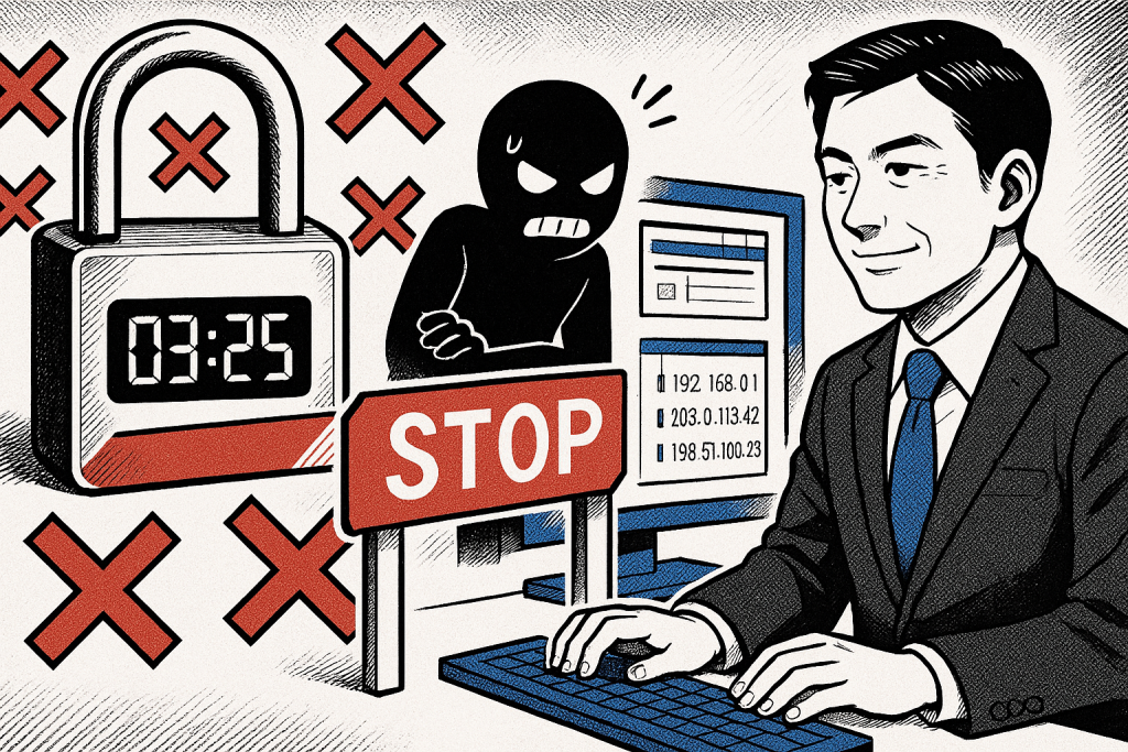 短時間に何度もログインに失敗した接続元(IPアドレス)を、一定時間ブロックする機能です。総当たり攻撃への対策として非常に有効です。