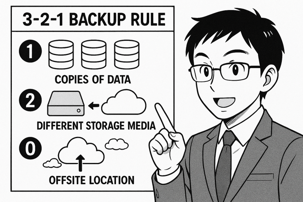 プロのエンジニアの世界には、「3-2-1ルール」というバックアップの鉄則があります。これを実践することで、データの安全性を飛躍的に高めることができます。